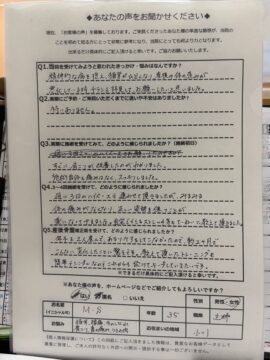 産後骨盤矯正/町田市小川在住/35歳女性/産後3年/第二子出産/施術期間 約2か…